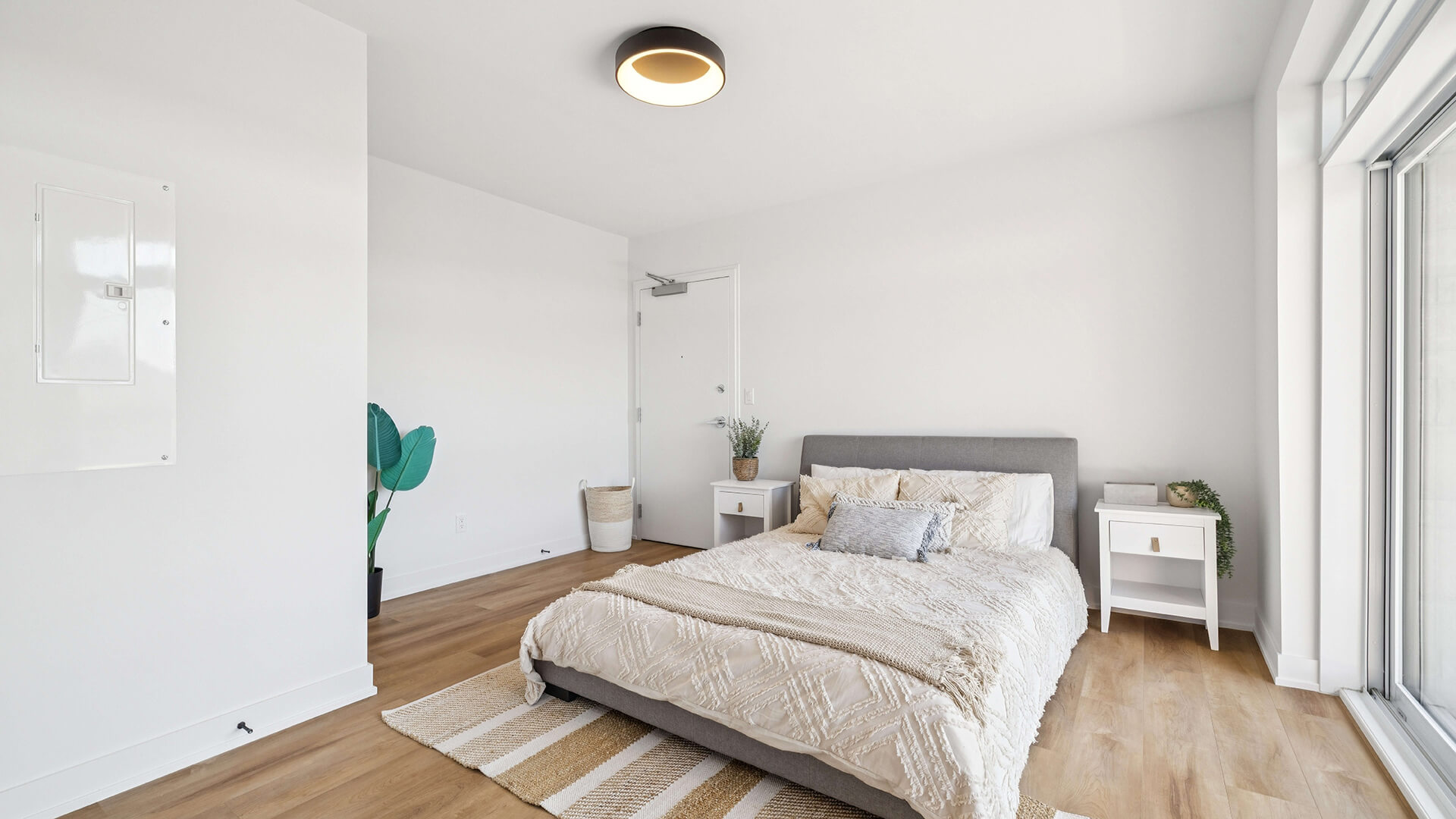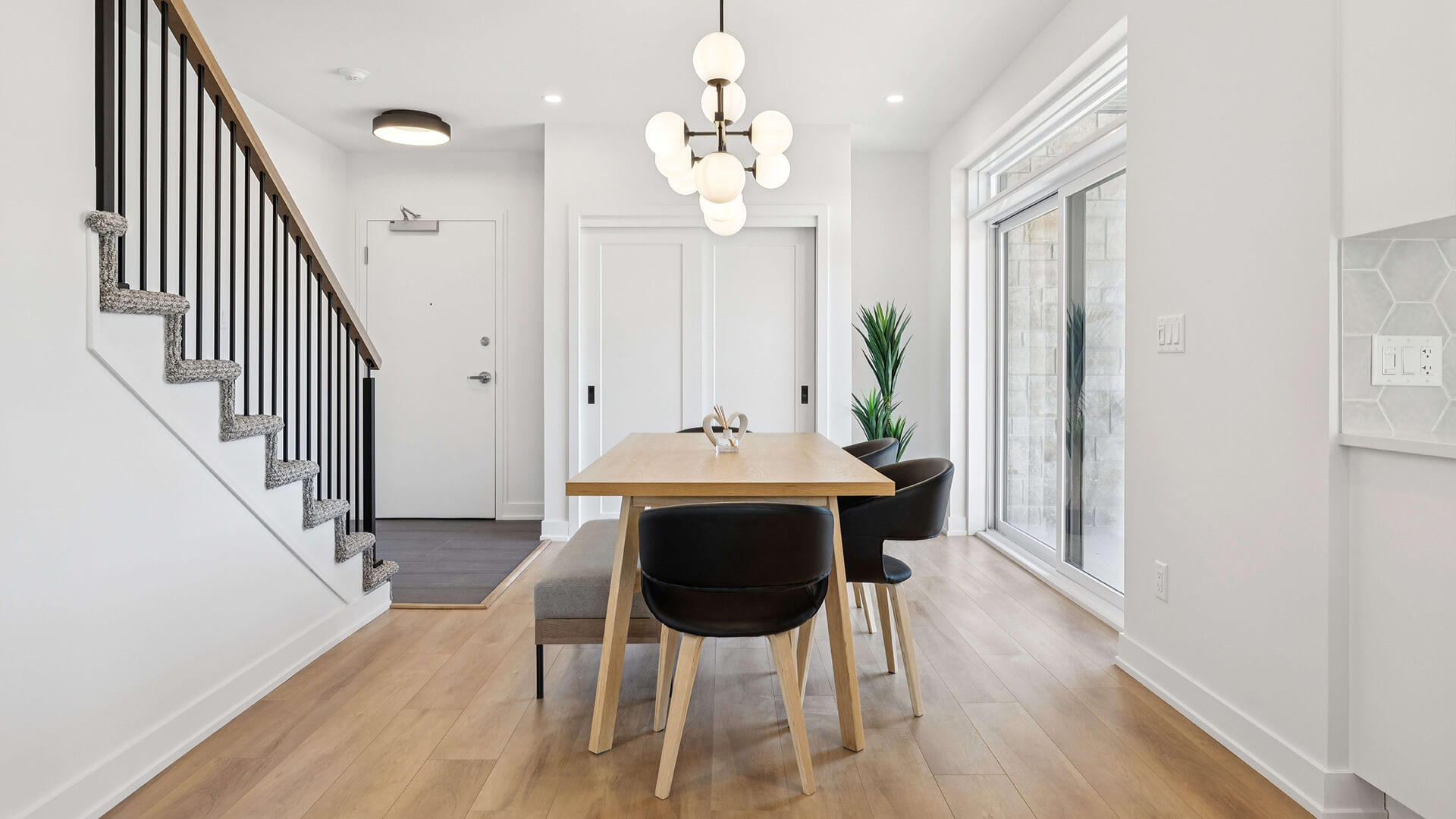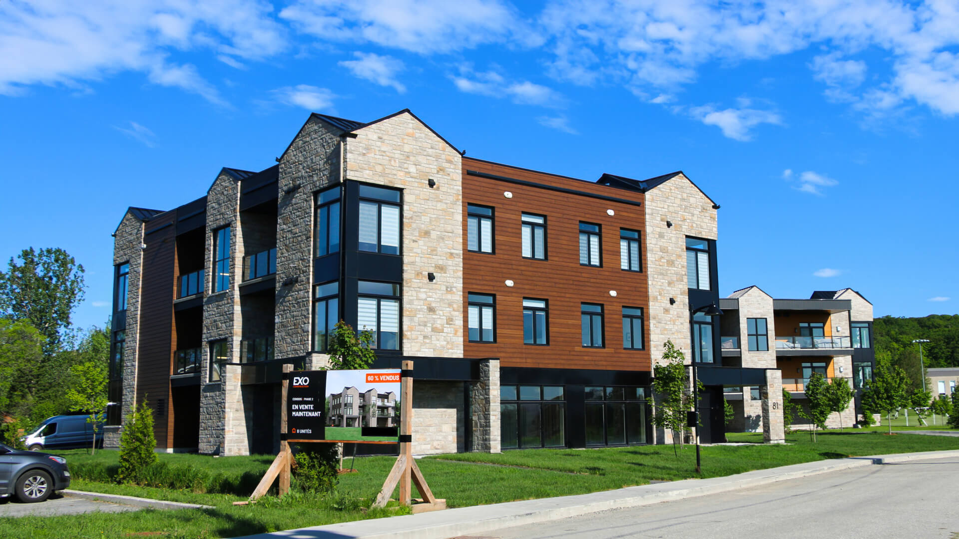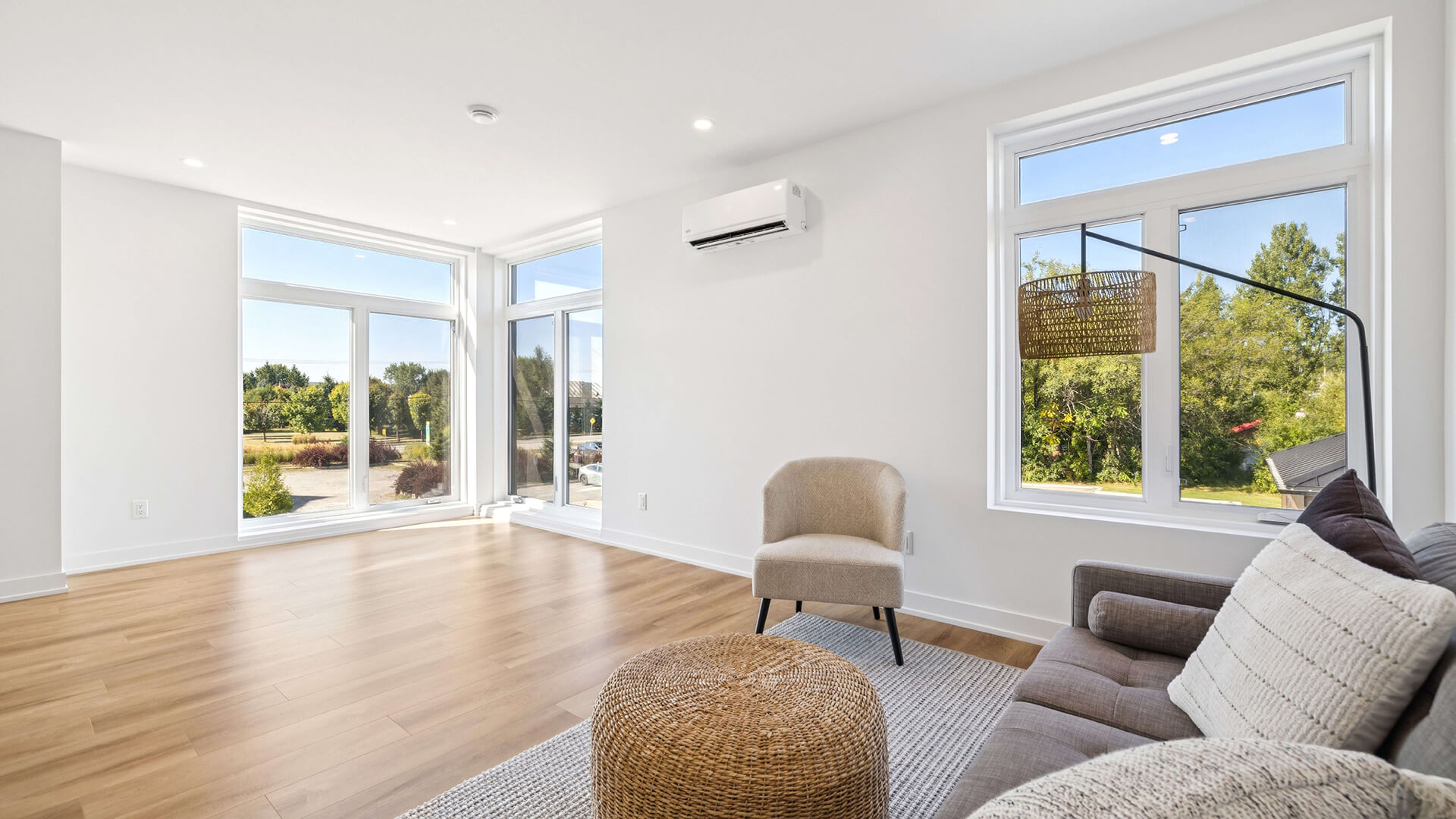 1313,2 pi2 2 étages 2 chambres 2 salles de bain + 1 salle d'eau Balcons : 12' x 6' 10'' Stationnement intérieur