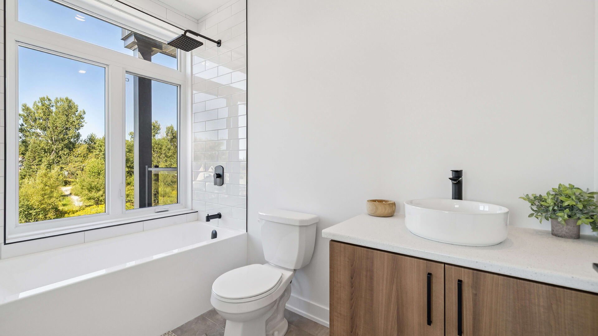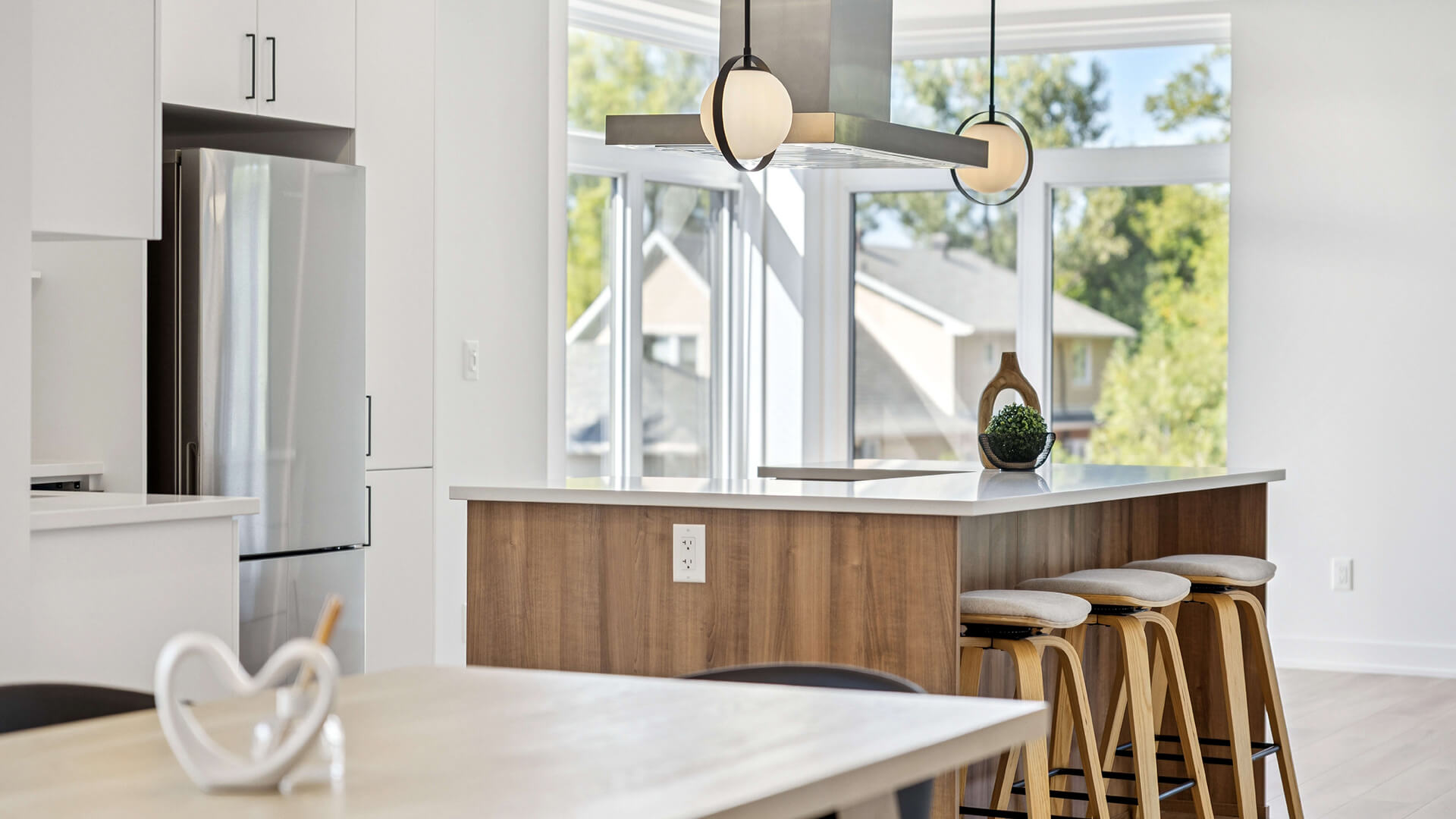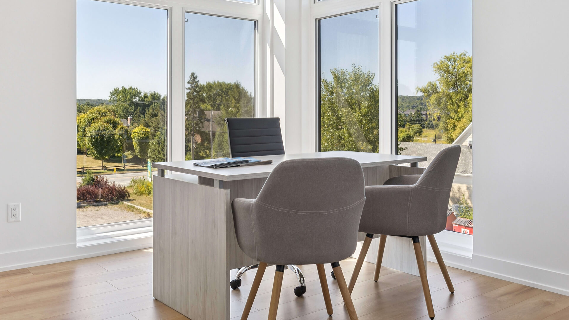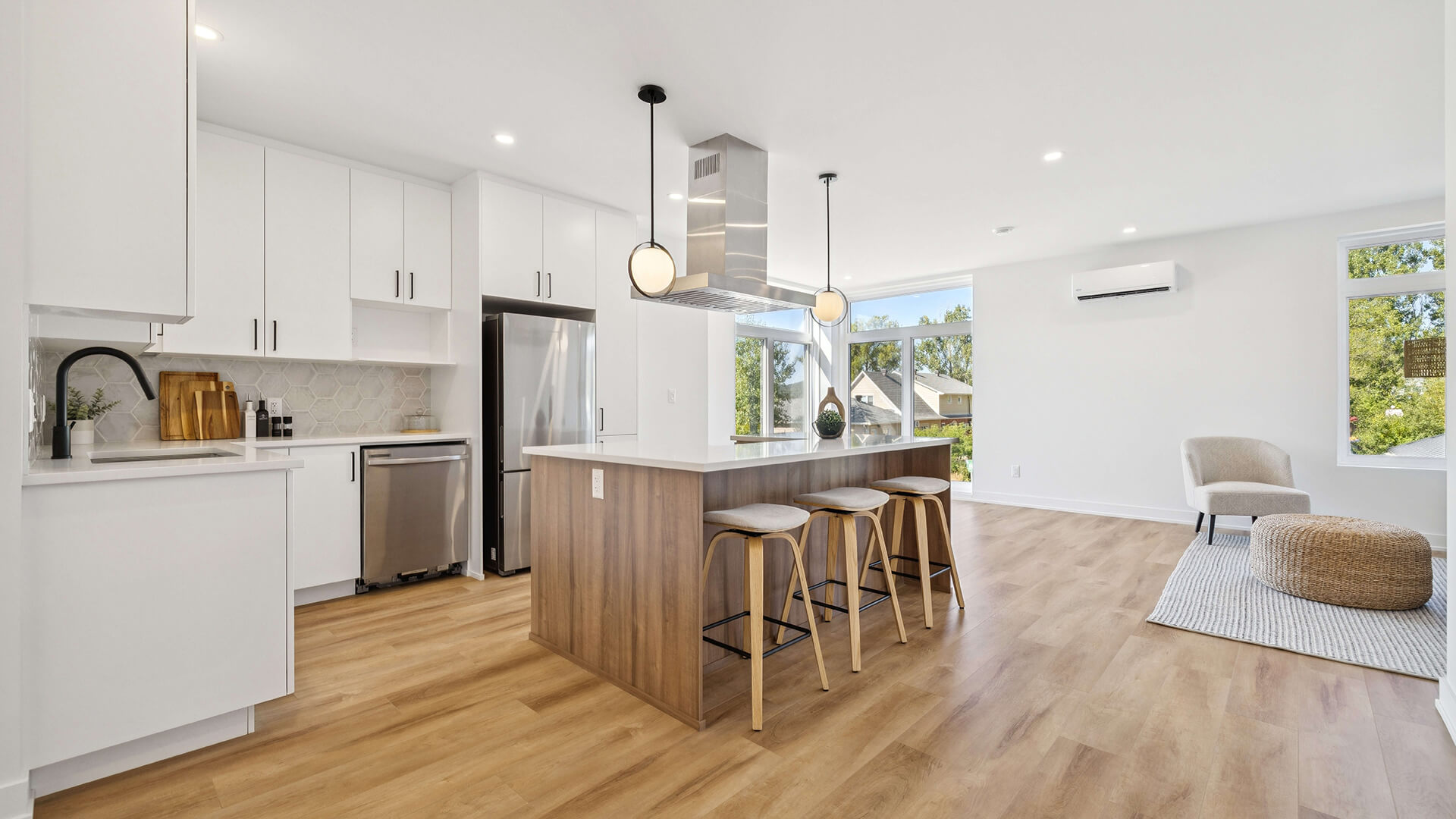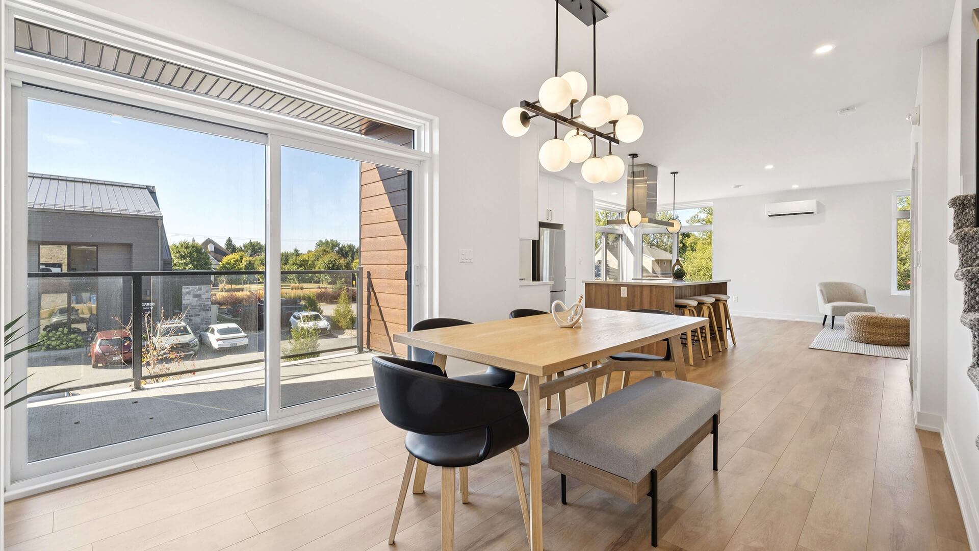 1313,2 pi2 2 étages 2 chambres 2 salles de bain + 1 salle d'eau Balcons : 12' x 6' 10'' Stationnement intérieur